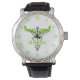 Alternative medizinische Caduceus grüne Blätter We Armbanduhr
