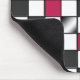 Mousepad, das einen karierten Entwurf mit dunklem rosa, dunkelgrauem und glänzendem Metall kennzeichnet.