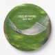 Hängematte zwischen zwei Eichenbäumen über grünem Gras für das Party der Pension