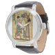 Uhr, Klassische Damenuhr mit schwarzen Lederarmband