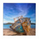 Altes blaues Boot am Meer Fliese