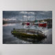 Altes Boot im Hafen sinkend, Ölmalerei Poster