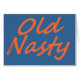 Die Wörter "altes ekliges" ein Spoof auf einer populären Marke von Kleidung. geschrieben in orange Buchstaben auf einen blauen Hintergrund.