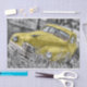Alte gelbe Autophotographie mit Schwarzweiss-Feld. Umbauten: Gelb, Auto, Auto, Automobil, "Schwarzweiss", Farbe, Fotografie, Foto, Antike, Schwarzes, Weiß, "Geschenke für ihn", Feld, alt, künstlerisch,