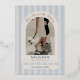 Laden Sie sich mit diesem Old Money Script Blue Stripe Foto Save the Date ein, um Ihre Hochzeitskalender zu markieren! Dieses Design verfügt über ein bogenförmiges Foto mit Skript-Schriftart und blauen Streifen. Personalisieren Sie Ihre Daten und das maßgeschneiderte Monogramm auf der Rückseite auf Zazzle! Haben Sie eine individuelle Anfrage? Nachricht!