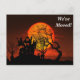 Dieses Design zeigt eine Silhouette eines alten Hauses. Auf einem Hügel mit Bäumen und einem orangefarbenen Mond .Mit einem Friedhof unter der Zuhause.Diese Postkarte wäre großartig für jeden, der eine neue Adresse hat oder haben wird. Klicken Sie auf die Schaltfläche "Anpassen", um Ihren eigenen Text oder Bilder hinzuzufügen, um ein einzigartiges Design zu erstellen! Schaffen Sie sich auf dieser Postkarte