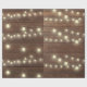 Eine Reihe glühender Glühbirnen auf rustikalem Eichenholz