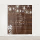 Rustikales Stallholz und Saitenlichter Set für Ihre Gäste Fotos von diesem Foto Stützpunkt. Rustikales altes Holz mit Hängematten, Glaskeramikleuchten und Glühwürmchen mit einem Maurerkirsch und Blumenstrauß, die in der unteren Ecke glänzen, schafft ein landschaftliches Ambiente für Ihre Fotos, oder als eine großartige Kulisse für Ihre Hochzeitsgast, Kuchentisch oder Hochzeitsempfang. "Happily Ever After" in handgeschriebener Kalligrafie mit den Namen der Braut und des Bräutigams und dem Hochzeitstag in modernem Text im zeitgenössischen Stil geschrieben. Dies ist Teil einer Sammlung von Hochzeitsartikeln mit passendem Hochzeitszubehör. Design erstellt für die BarefootBride™ © by Whimsical Artwork™