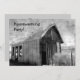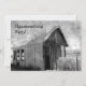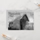 Ein Foto einer alten, verlassenen Hütte in Schwarz und Weiß macht lustige Party Einladungen zur Hauswärmung.