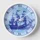 Diese antike nautisch-thematische Wanduhr verfügt über ein blau Vintages Segelschiff / Hochschiff mit Rigging und drei Masten, ein paar Flaggen (ein paar amerikanische Flaggen) und ein schwaches, bedrücktes uraltes Kartenbild dahinter. Die Uhrenzahlen werden in dunkelblauen römischen Ziffern auf einem halbtransparenten hellblauen Kreis ausgeführt. Diese wunderschöne Uhr würde gut aussehen in Ihrem Strandhaus, Sommer-Zuhause oder zu jedem Strand / Ozean / Meer / Boot themed Wohngestaltung.