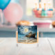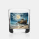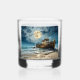 Dieses alte Whisky-Glas ist mit einem alten Holzschiff geschmückt, das am Ufer mit einem Vollmond aufragt. Das Bild ist beiderseits und "Beifall für die Seezunge" und "Mögen sie in Frieden Erholung haben" wird auf beiden Seiten gedruckt. Dieses Bild ist sehr beeindruckend und atemberaubend.