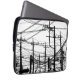 Diese Schwarz-Weiß-Sicht von Power und Telefonleitungen macht eine interessante künstlerische Perspektive auf die technologische Infrastruktur unserer modernen Welt aus. Dies kann jedoch nur ein Snapshot in der Zeit sein, da immer mehr Dienstprogramme Untergrund oder die drahtlose Übertragung übertragen.