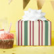 Dieses festliche Urlaubspapier wird von einem Vintagen Weihnachtsgestreifen aus Creme, Dunkelrot und Grün geschmückt. Das Design stammt aus der Originalkunst.