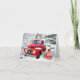 Stilvolle klassische Rot-Tüte mit Kranz auf einer verschneiten Tageskarte.