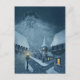 Weihnachts-Postkarten mit originellen exklusiven Kunstwerken des alten Mannes Winter, die eine romantische Kleinstadt am Weihnachtsabend besuchen, mit viel Schnee und fieberhaften Dekorationen.