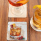Altmodische Getränke mit Kirschen und Orangen Rechteckiger Pappuntersetzer