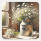 Altmodische Milchdose mit Daisy Bouquet Quadratischer Aufkleber