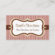 Schokoladenbraun und rosa Streifen zieren diese Vintage Visitenkarte. Passen Sie diese Visitenkarte an, um Ihren Anzug zu gewährleisten. Das Design stammt aus der Originalkunst, verwendet diese stilvolle Visitenkarte für Wellness-Center, Salon, Kleinunternehmen, Wohngestaltung, Veranstaltungsplaner, Bäckerei, Süßwarenladen, Schokoladenhändler, Eisdielen, Café, Café, Süßwarenladen, Catering-Business, etc...