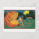 Altmodisches Halloween, Junge mit Jack-o'-Laterne Postkarte