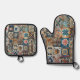 Altmodisches Patchwork Quilt Design Ofenhandschuh & Topflappen-Set