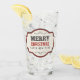 Dieses herrliche Feiertagsliterglas hat einen Vintagen Aufkleber auf ihm, das sagt, "frohe Weihnacht-glückliches neues Jahr". Es ist ein Teil der netten Zusammenstellung der Weihnachtsfeiertags-Biergläser, die von Superkalifragilistic erreichbar sind.