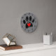 Niedliche Hundepapete und rote Herzzeichnungen. Grauer, alter Papierdruckeffekt auf das Bild angewendet. Maßgeschneiderte Wanduhren. Cartoon Art. Geschenkidee für Hundeliebhaber jeden Alters.