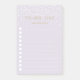 Chic personalisierte Notizblock verfügt oben über "to do list" mit Ihrem Namen, in dunkelantiken Goldbuchstaben auf einem pastellfarbenen Lavendel lila Hintergrund gepunktete weiße Konfetti-Punkte von oben regnen. Behalt mit diesem Notizblock mit 11 Checkboxen alle wichtigen Aufgaben auf.
