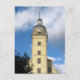 Schicken Sie eine Nachricht an jemanden auf dieser Postkarte mit einem klassischen Turm in der Altstadt von Düsseldorf, Deutschland.