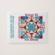 Puzzle für die Altstadt Quiltville Mystery. Sie müssen EDIT TEXT verwenden, um die türkisfarbene Schrift in Ihren eigenen Namen oder Ihre eigenen Informationen zu ändern.