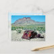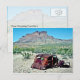 Ein wunderschönes kaputtes Auto-Design mit dem Titel Rusted Antique Car In Front Of Butte, ist ein bemerkenswertes Stück Naturkunst.