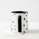 Ein schöner deutscher Schäferhund sieht dich von beiden Seiten dieser Tasse aus an. Der Text zwischen den beiden Bildern sagt: "Am 8. Tag erschuf Gott das DEUTSCHE SHEPHERD und nannte es SEHR GUT". Die Hundebilder und das weiße ovale Banner mit den Textfeldern werden auf einem weißen Hintergrund mit schwarzen Pfoten platziert. Niedlich!