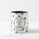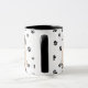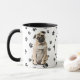Ein bezaubernder Mops Hund schaut euch von beiden Seiten dieser Tasse aus an. Der Text zwischen den beiden Bildern sagt: "Am 8. Tag erschuf Gott den MOPS und nannte ihn SEHR GUT". Die Hundebilder und das weiße ovale Banner mit den Textfeldern werden auf einem weißen Hintergrund mit schwarzen Pfoten platziert. Niedlich!