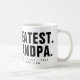 Maßgeschneiderte gedruckte Tasse personalisiert mit Ihren Fotos und Vatertag Nachricht. Kühne moderne Typografie-Design lautet "Bestste. Opa." oder verwenden Sie die Designwerkzeuge, um Ihren eigenen Text hinzuzufügen. Klicken Sie auf die Schaltfläche, um die Hintergrundfarbe zu ändern und Schriftart und Farben zu bearbeiten, Dinge zu bewegen oder weitere Fotos hinzuzufügen, um Ihre eigenen Geschenke zum Vater des Tages für Großvater und Urgroßvater zu erstellen!