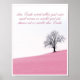Am Ende wird alles gut sein und wenn es nicht gut ist, dann ist es nicht das Ende. Angelehnt an ein Zitat von Oskar Wilde. Einzelner Baum auf pinker Wiese mit blauem Himmel.