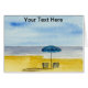 Eine einfache Aquarelllandschaft mit Liegestühlen und Sonnenschirmen direkt am Meer. Passen Sie den Text an, indem Sie ihn selbst in Anzug umwandeln!