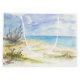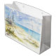 Schöne Geschenktaschen mit Seeblick in beeindruckenden Wasserfarben. Blauer Himmel und karibisch-blaue Meere waschen sich auf sandigen Ufern.
