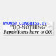 AM SCHLECHTESTEN. KONGRESS. ÜBERHAUPT. ÜBERSPRINGrepublikaner MÜSSEN GEHEN! Autoaufkleber-Unterstützung die, die laufen lassen, wem einen Jobwechsel avalisiert und Amerikaner zurück zu Arbeit nach dem schrecklichen Verlust von Millionen Jobs übersee setzt. Auch der GOP unterstützt die reichsten Amerikaner und wir müssen den Steuersatz auf den wohlhabendsten Bürgern zurück zu 40% wieder herstellen, um Amerika stark zu behalten.