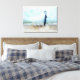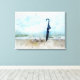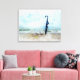 Ein Regenschirm und Schuhe an einem Sandstrand vor dem Meer in Aquarell