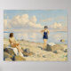 Am Strand von Paul Fischer (1860-1934) ist ein bezauberndes Vintages Gemälde, in dem zwei Frauen in ruhiger Lage am Meer dargestellt werden. Die weiche Farbpalette und die zarten Pinselstriche spiegeln die friedliche Atmosphäre eines Sommertags an der dänischen Küste wider. Fischers meisterhafte Darstellung von Licht und Bewegung bringt die Szene zum Leben und macht dieses Kunstwerk zu einer zeitlosen Darstellung der Strandzeit des frühen 20. Jahrhunderts. Ideal für Sammler Vintager europäischer Kunstwerke und Drucke mit Küstenthemen. Verwenden Sie die Entwurfstools, um einen benutzerdefinierten Text hinzuzufügen oder das Bild zu personalisieren.