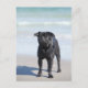 Am Strand Stehender schwarzer Mops Postkarte