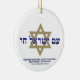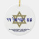 Am Yisrael Chai hebräischer Text mit blauem personalisierten Sondertext und Imitaten dunkelgoldener Stern von David auf weißem Hintergrund auf einer Seite des Ornaments. Israel-Flagge auf der anderen Seite des Ornaments. Erhältlich in vielen Formen und Materialien. Am Jisrael Chai, Das Volk Israels lebt, die Nation Israels lebt als jüdische Solidaritätshymne und als weit verbreiteter Ausdruck jüdischer Völker. Text ist vollständig anpassbar. Diese sind großartig wie Hanukkah Geschenke und Gefallen.