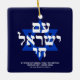 Am Yisrael Chai hebräischer Text mit weißem personalisiertem, individuellem Text und blauem Stern von David auf marineblarem Hintergrund auf einer Seite des Ornaments. Israel-Flagge auf der anderen Seite des Ornaments. Erhältlich in vielen Formen und Materialien. Am Jisrael Chai, Das Volk Israels lebt, die Nation Israels lebt als jüdische Solidaritätshymne und als weit verbreiteter Ausdruck jüdischer Völker. Text ist vollständig anpassbar. Diese sind großartig wie Hanukkah Geschenke und Gefallen.