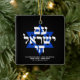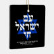 Am Yisrael Chai hebräischer Text mit weißem personalisiertem, individuellem Text und blauem Stern von David auf schwarzem Hintergrund auf einer Seite des Ornaments. Israel-Flagge auf der anderen Seite des Ornaments. Erhältlich in vielen Formen und Materialien. Am Jisrael Chai, Das Volk Israels lebt, die Nation Israels lebt als jüdische Solidaritätshymne und als weit verbreiteter Ausdruck jüdischer Völker. Text ist vollständig anpassbar. Diese sind großartig wie Hanukkah Geschenke und Gefallen.
