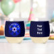 Ein heller Star of David auf dunkelblauem Hintergrund. Der hebräische Text lautet "Am Israel Chai" (Das Volk Israels lebt!). Passen Sie Ihren eigenen Text auf der Rückseite an. Amalek ist immer bei uns. In jeder Generation kommen sie, um uns umzubringen, aber die jüdischen Menschen überleben. Dann kam Amalek und attackierte Israel in Rephidim.. (Exodus 17:1-8) Denken Sie daran, was Amalek Ihnen auf dem Weg, auf dem Weg aus Ägypten tat. Dass er dich auf dem Weg begegnete und diejenigen abgeschnitten hatte, die an deinem Heck hinterherhinkten, als du müde und erschöpft warst; er fürchtete G-d nicht. Deshalb.. müssen Sie die Erinnerung an Amalek unter den Himmeln auslöschen. Vergessen Sie nicht. (Deuteronomie 25:17-19)