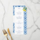 Amalfi Küste Italien Mittelmeer Lemon Hochzeitsmenü, mit blauen Fliesen, Zitronen. Sie können alle Texte ändern und löschen, wenn Sie möchten. Bellissima Italia © Sie können mit Ihren Namen und Text personalisieren. Sie können Textfarbe und Schriftart-Stil ändern, indem Sie die weitere Option anpassen. BITTE BEACHTEN SIE: Die online angezeigten Farben können leicht vom aktuellen Produkt abweichen.