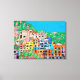 Amalfi Küste von Italien Digitale Kunst Traditioneller Stil Leinwand Kunstdruck. Sehr farbenfroh mit pastellfarbenen Häusern am Mittelmeer. Die Häuser sind nah zusammengestapelt, steil ansteigend und das Bild ist sehr malerisch und schön. Erstellt von Künstler PatriciaVilla.