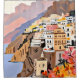 Amalfi Küste, Malerei Natur Landschaft Reisen, Sommer Romantische Landschaftliche Pastel farbenfrohe Orte, Exotic Europe Berge Hills Valley Beach Illustration von 83 Orangen Uma Gokhale.