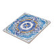 Ein blauer, gelber und grüner dekorativer Entwurf auf einem weißen Hintergrund mögen gesehen auf Mittelmeerfliesen