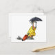 Amargasaurus mit Regenschirm und Koffer. Postkarte