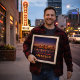 Capture the sprawling horizon and glowing city lights of the Texas Panhandle with this Amarillo Centennial poster. Commemorating the 100th anniversary of Route 66, this vintage-inspired artwork features the Amarillo skyline reflecting across the water under a vast, star-studded night sky. The design blends the golden warmth of the setting sun with deep indigo tones, celebrating the rugged spirit and historic significance of this major stop on the Mother Road.